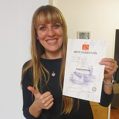Es gibt immer was zu feiern! Unsere Newcomerin Anna hat ihre Anglerinnen-Prüfung bestanden, ist jetzt stolze Besitzerin des Fischereischeins A, und wird in der nächsten Saison im SAV Gut Biss e.V. richtig durchstarten. Also, zieht Euch warm an Jungs! Herzlichen Glückwunsch und stramme Schnüre wünscht Dir das komplette Team vom SAV Gut Biss e.V., Anna!