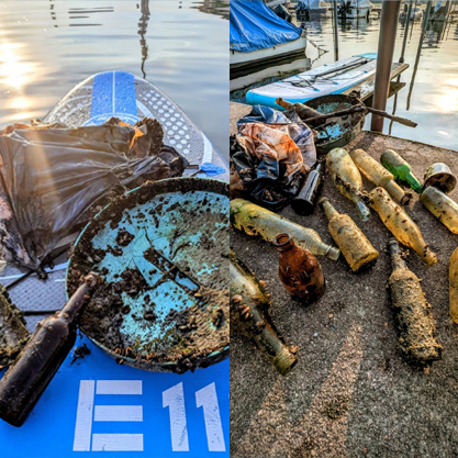 Eine Runde mit dem SUP bot die perfekte Gelegenheit, ein paar Hinterlassenschaften anderer aus unserem Gewässer zu fischen – und das (leider) innerhalb weniger Minuten mit Erfolg. Ganz schön erschreckend, wenn man das auf das komplette Gewässer hochrechnen würde. Nutzt auch Ihr die Gelegenheit, wenn Ihr auf dem Wasser unterwegs seid und lasst den Müll nicht an Euch vorbei treiben.